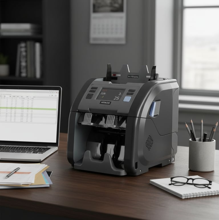 Chez Comtraflex Casablanca, découvrez la compteuse de billets HITACHI IH-110, conçue pour les entreprises, commerces et bureaux de change qui recherchent rapidité, précision et sécurité dans la gestion des transactions en espèces.